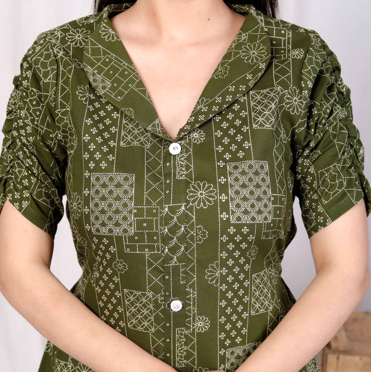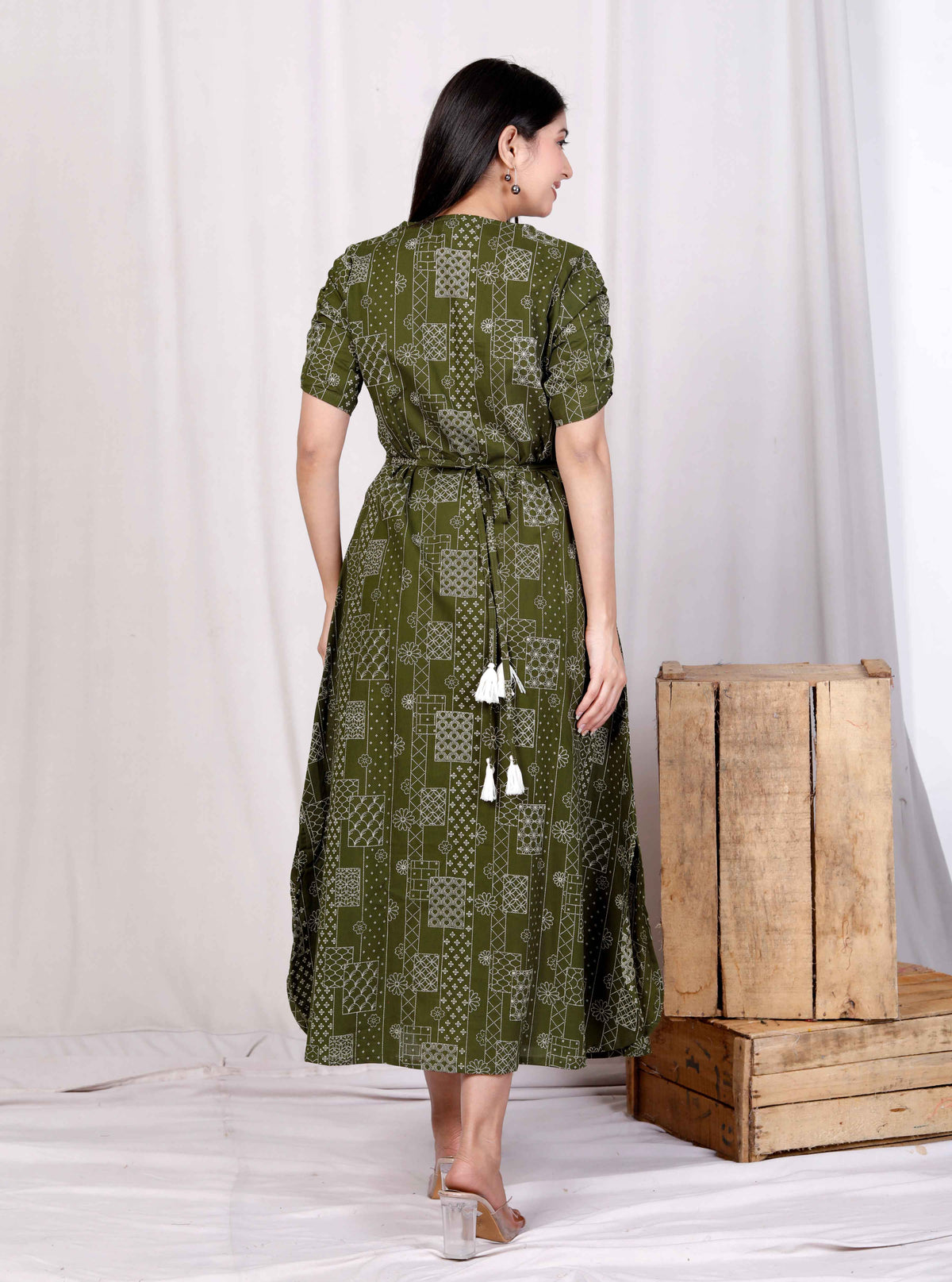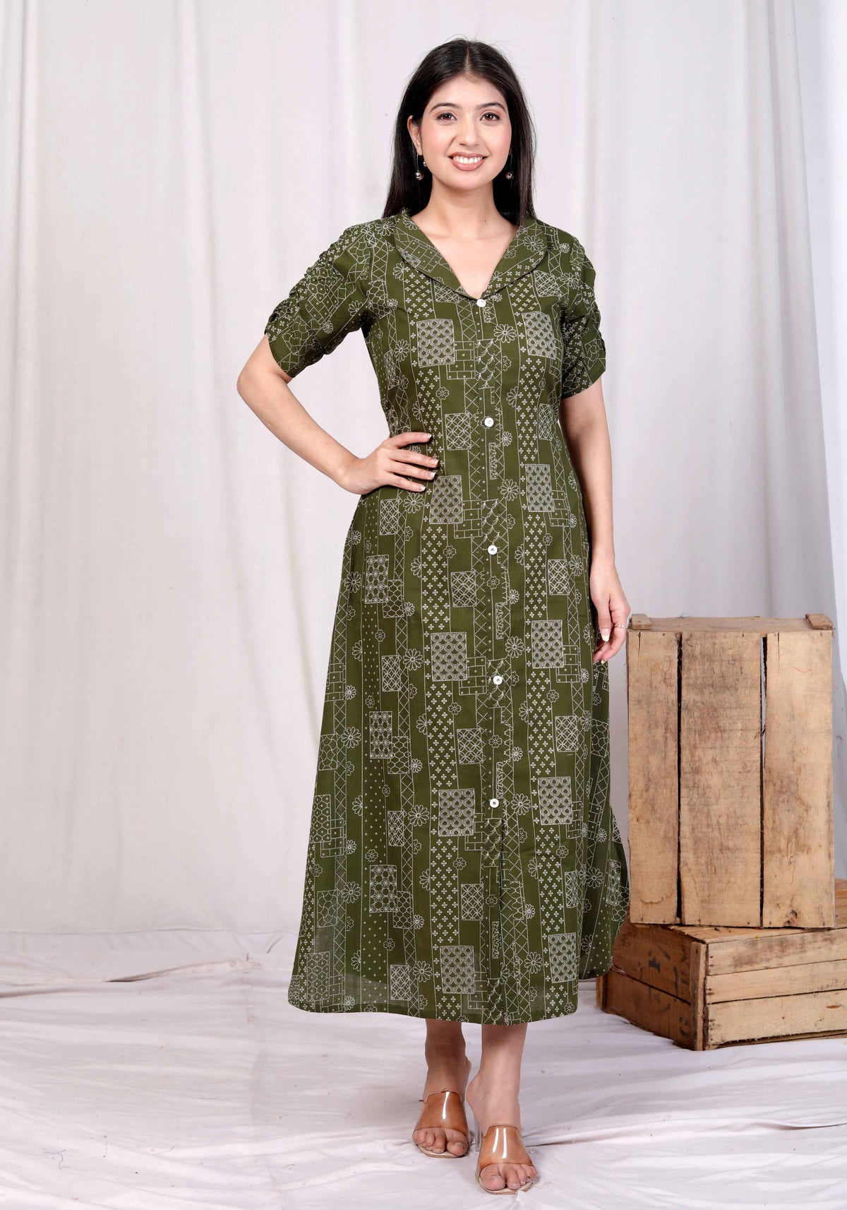 Green Cotton Floral Printed A-Line Midi Dress – Casual & Vacation Wear