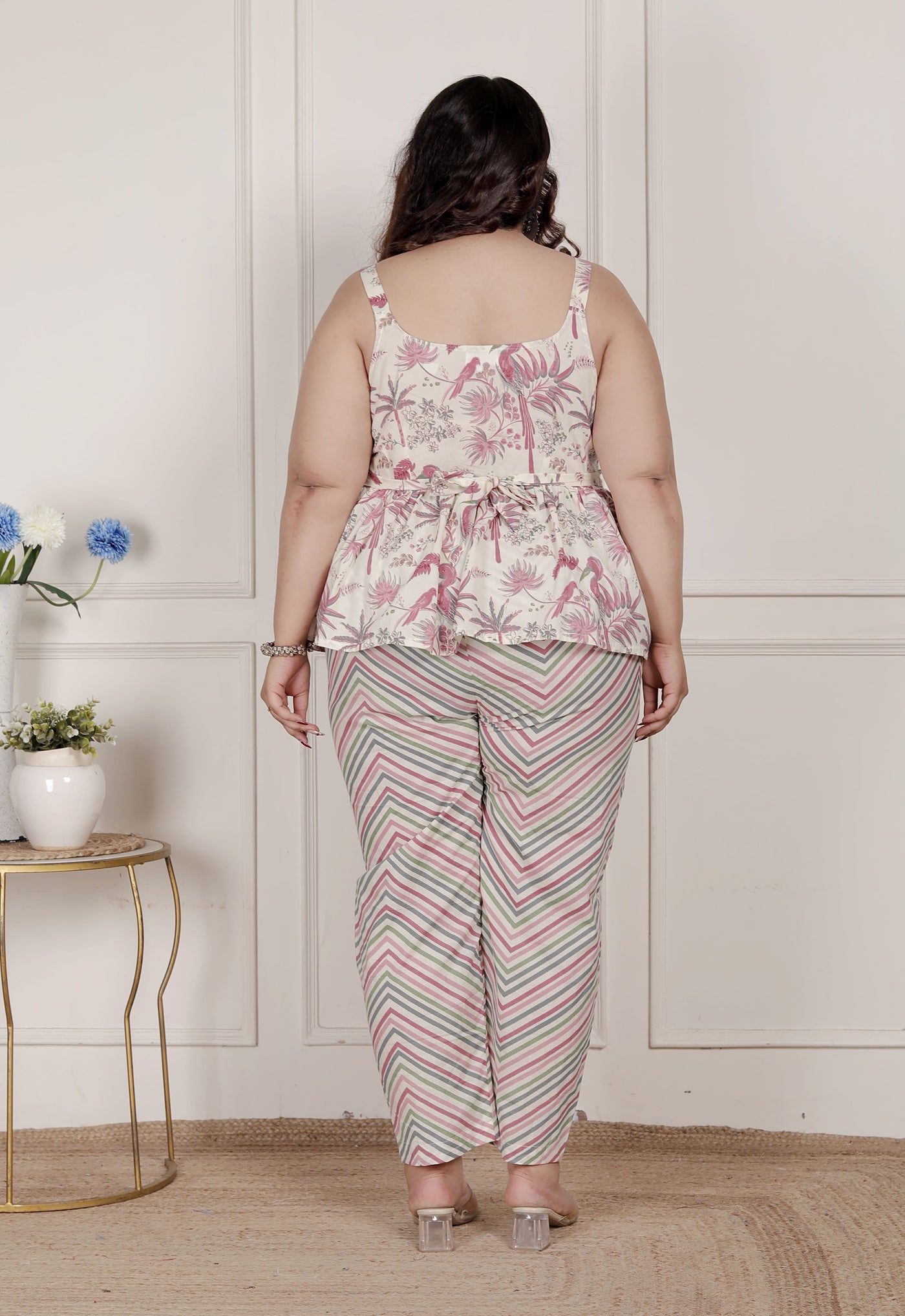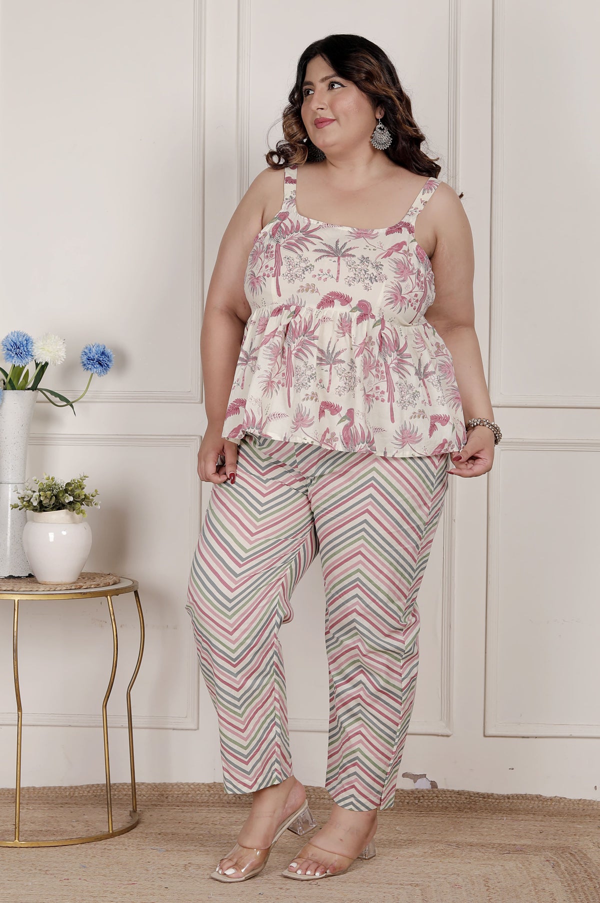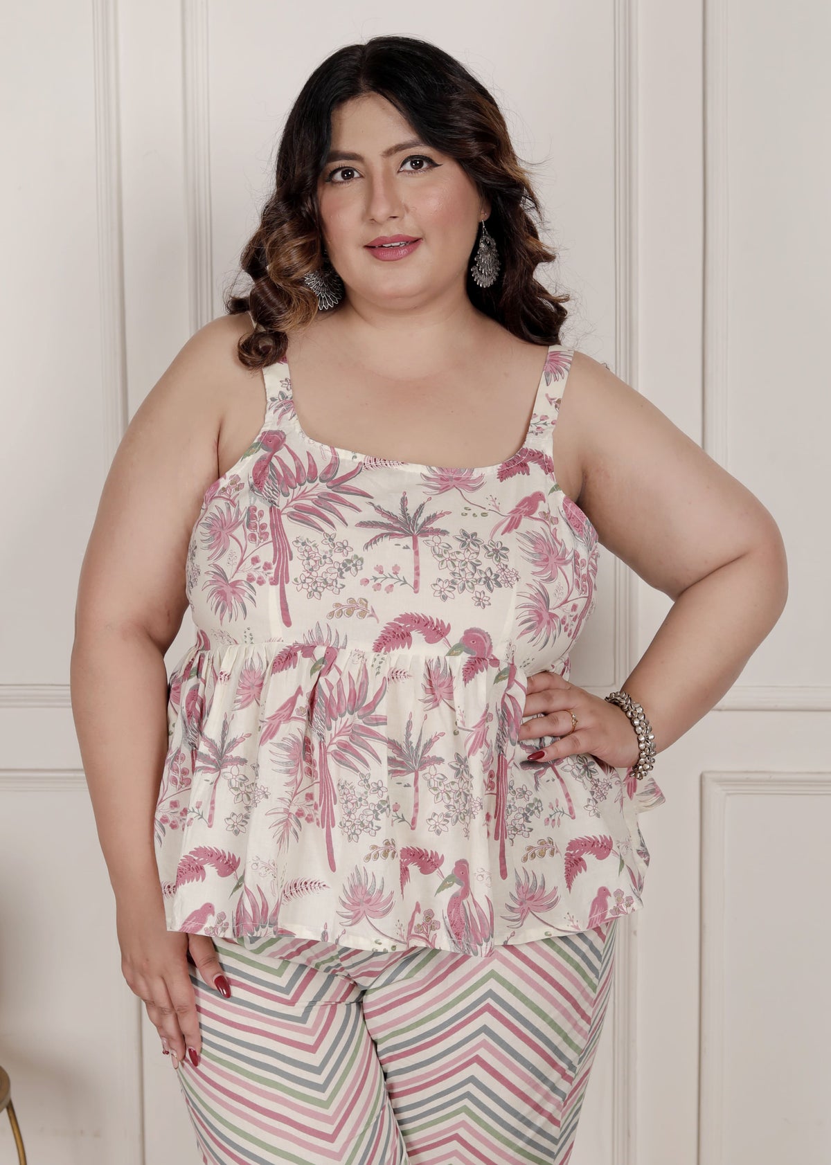 Pink Cotton Printed Night Dress with Palazzo Set - Pink / S