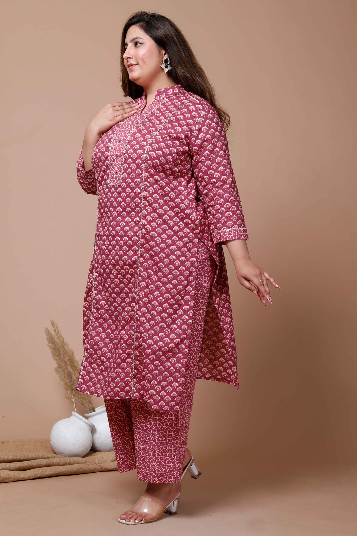 Floral Printed Pink Cotton Straight Kurta with Palazzo Set