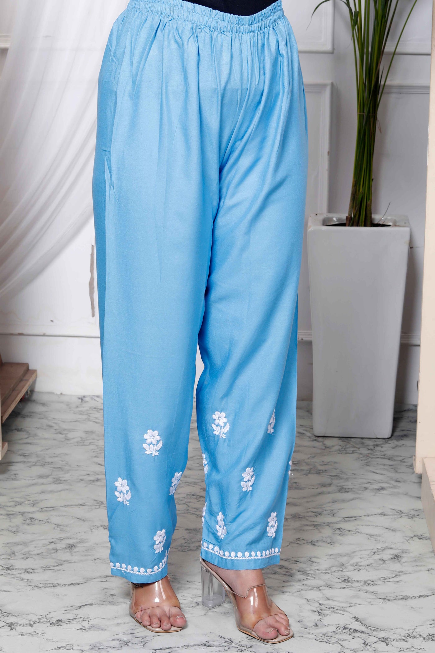 Sky Blue Chikankari Embroidered Straight Kurta with Palazzo Set - Sky Blue / S