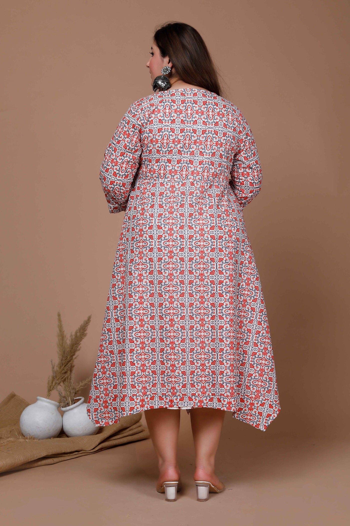 Orange Floral Printed Sleeveless Anarkali Kurta with Printed Jacket - Orange / S
