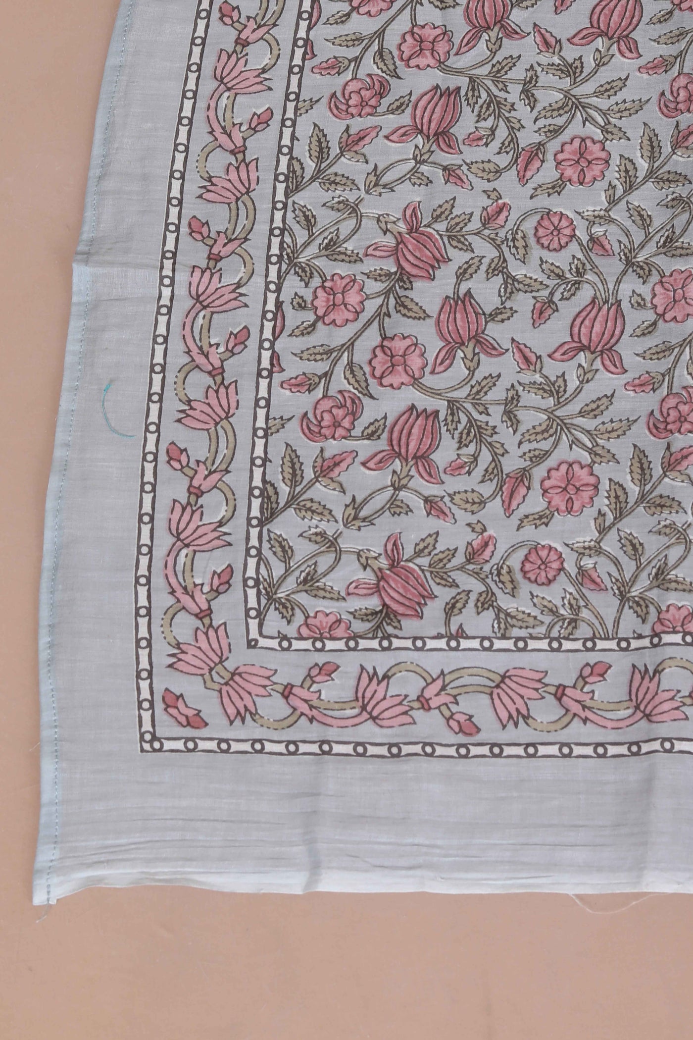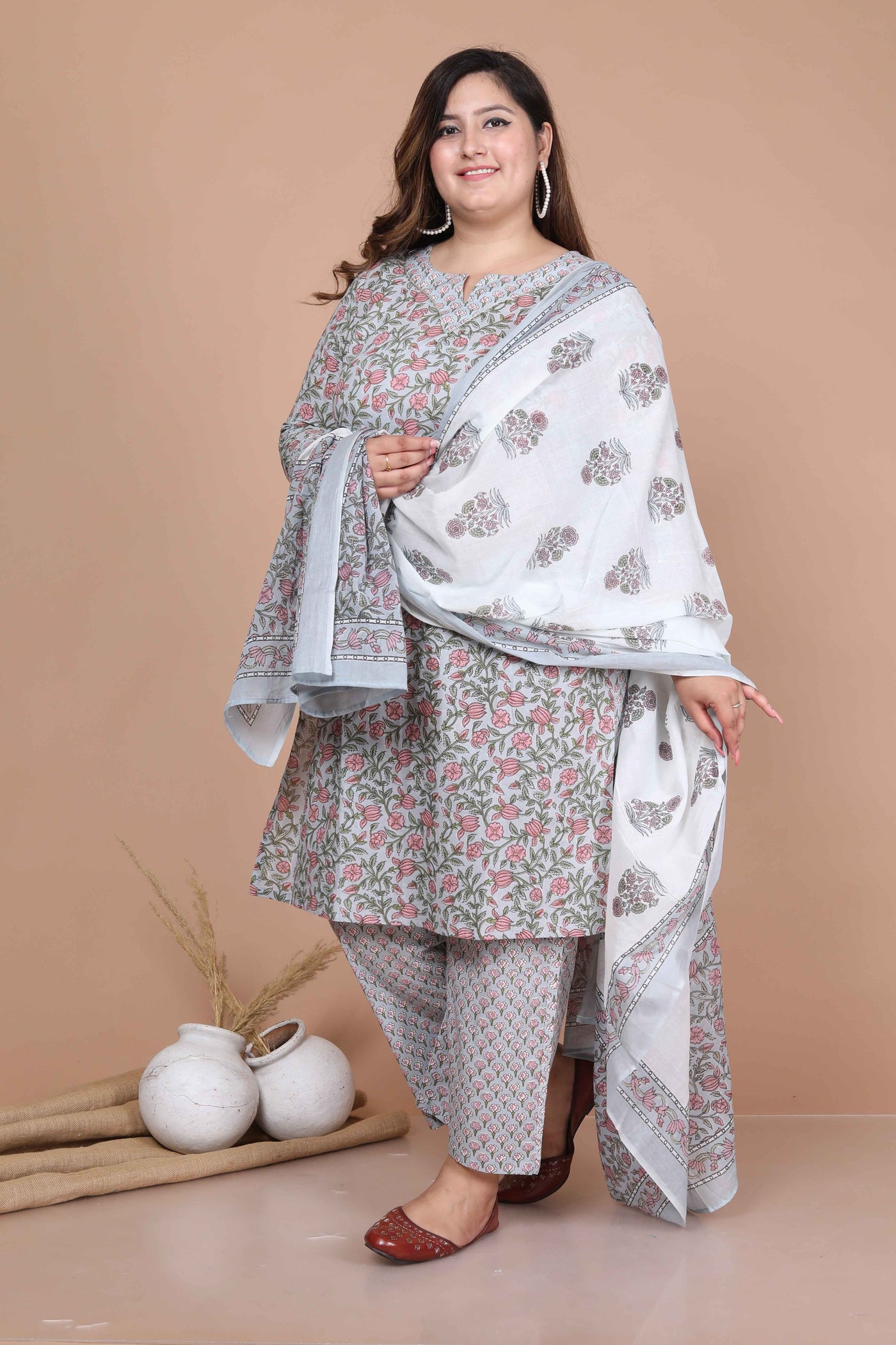 Blue Printed Cotton Straight Kurta with Palazzo and Dupatta Set