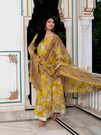 Purple Floral Cotton Kurta with Palazzo & Dupatta Set